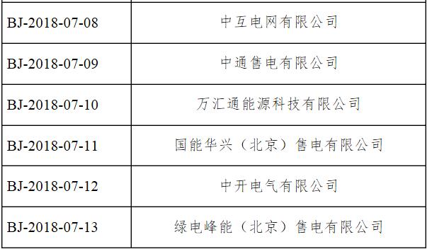 公示期間,任何單位和個人如有異議,可通過來電、來信、來訪等方式向北京電力交易中心實名反映。本次公示售電公司目錄如下: