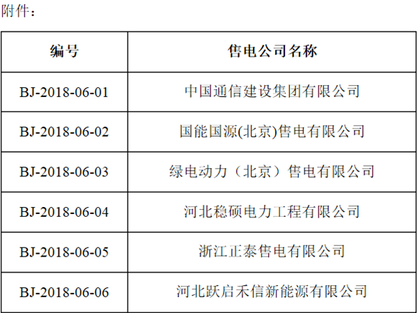 北京電力交易中心關(guān)于售電公司公示結(jié)果的公告