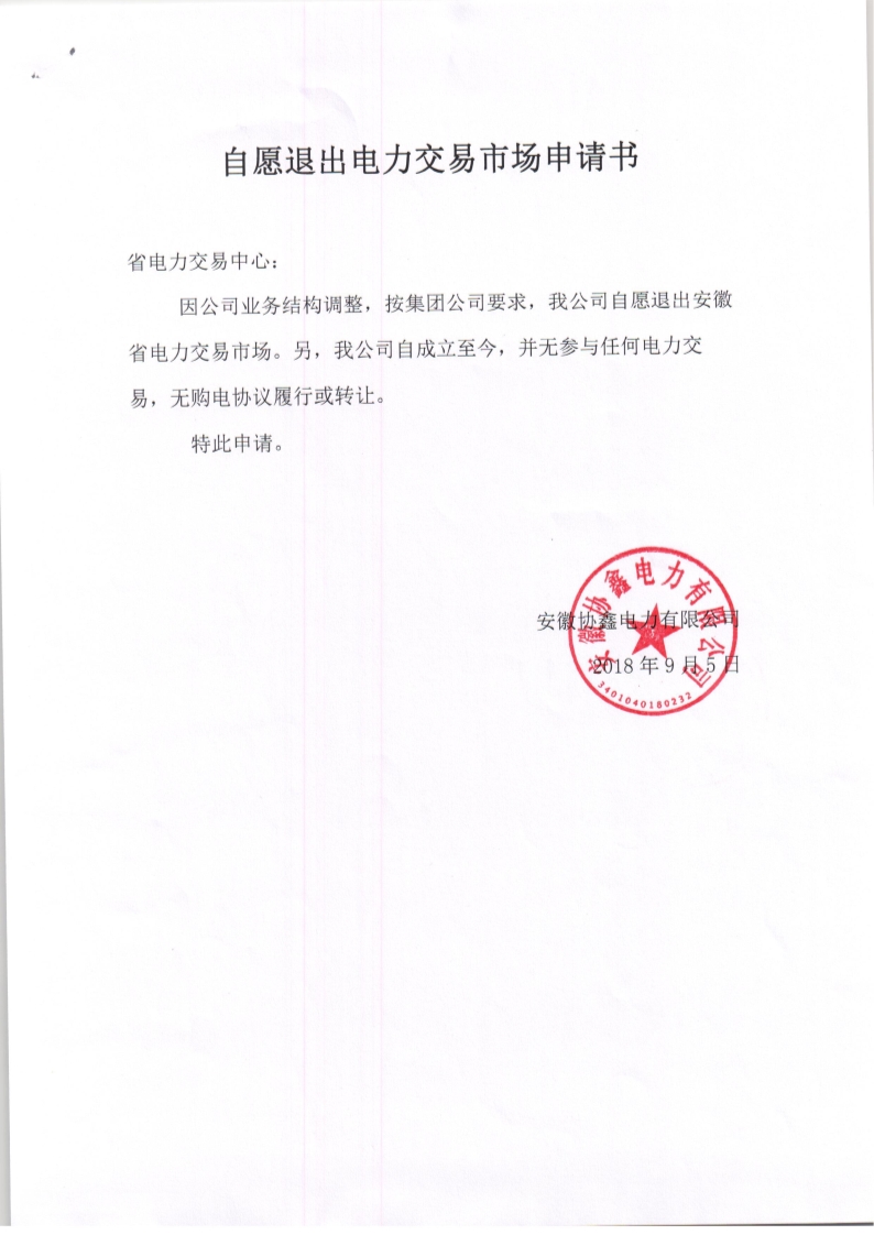 安徽電力交易中心近日發(fā)布了《關于安徽協(xié)鑫電力有限公司退出電力市場的公示》,現(xiàn)對安徽協(xié)鑫電力有限公司進行退市公示。