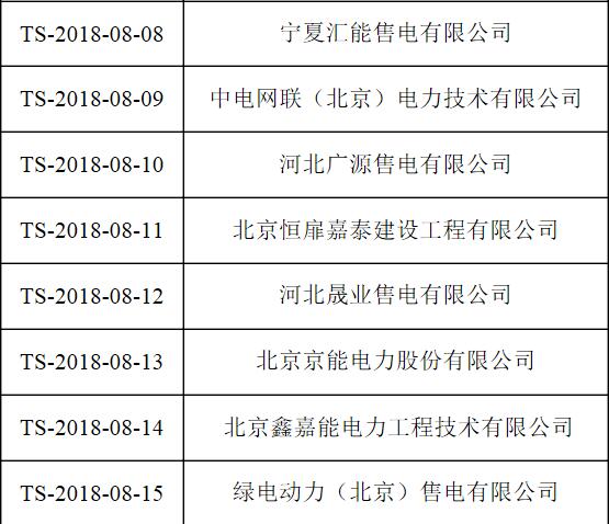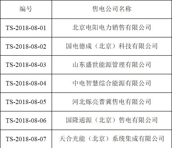 于2018年8月13日至2018年9月12日對北京電陽電力銷售有限公司等20家售電公司的市場注冊申請材料進行了公示。公示期間,市場有關方面未對該20家售電公司提出異議,該20家售電公司(見附表)在首都電力交易中心的注冊自動生效。