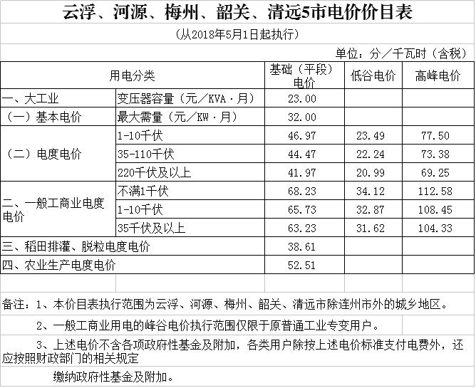 一、全省除深圳市外一般工商業(yè)電度電價每千瓦時統(tǒng)一降低0.58分(含稅,下同);深圳市的一般工商業(yè)電價和大工業(yè)電價已合并為工商業(yè)及其他電價,其各類工商業(yè)及其他電價均每千瓦時統(tǒng)一降低0.12分。各地各用戶調(diào)價后的具體電價標準見附件。
