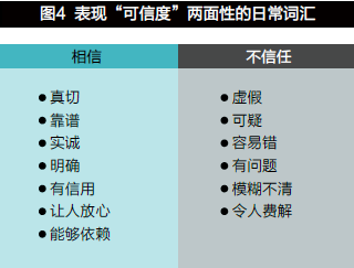 用日常語(yǔ)言分析的方法,我們可以看到“相信”和“不信任”兩個(gè)變量之間的差別(見(jiàn)圖4)。