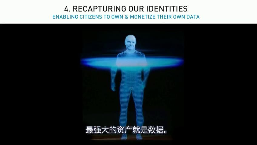 數(shù)據(jù)是一種新的資產(chǎn)種類,也許比以前的資產(chǎn)種類更龐大,就像農(nóng)業(yè)經(jīng)濟下的土地,或是工廠,甚至是金錢。是我們所有人,創(chuàng)造了這些數(shù)據(jù),我們創(chuàng)造了這種資產(chǎn),在我們的數(shù)字生活中,留下了零碎的痕跡,這些痕跡匯聚成了你的鏡像,一個虛擬的你。虛擬的你也許比你還要了解你,因為你并不一定記得一年前買了什么,或是說了什么,或者你一年前的準確位置。而虛擬的你并不屬于你,那可是個大問題。所以現(xiàn)在有許多公司致力于開發(fā)一個黑盒中的身份系統(tǒng),屬于你自己的虛擬的你。這個黑盒會隨著你移動,前往世界的每一個角落,它對你的隱私守口如瓶,它只會根據(jù)需要透露一丁點的信息。有許多的交易,賣家甚至不需要知道你是誰,他們只要知道能拿到錢,于是這化身清除了所有數(shù)據(jù),使你能夠進行貨幣化,這可真棒,因為它能保護我們的隱私,而隱私是自由社會的基礎。讓我們重新奪回我們創(chuàng)造的這一資產(chǎn)的控制權(quán),我們擁有我們自己的身份并進行負責的管理。