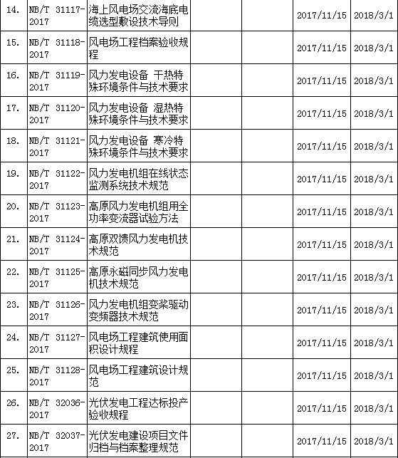 國家能源局發(fā)布2017年第10號(hào)公告:批準(zhǔn)17項(xiàng)風(fēng)電標(biāo)準(zhǔn)(附目錄)