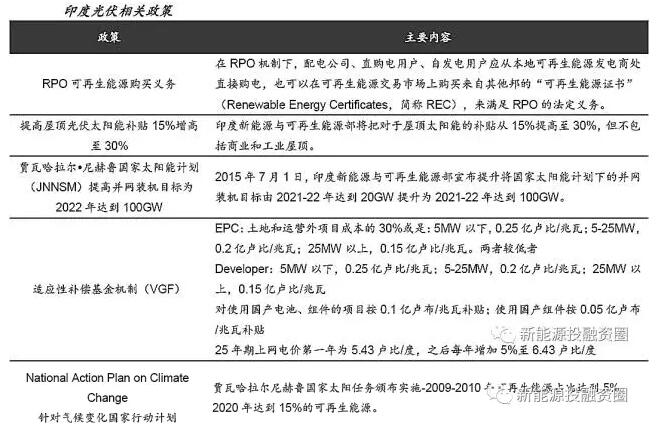 整體而言,印度政府推出了宏大國家太陽能計劃——至2022年,總裝機容量將達到100GW,該計劃被認為是推動印度光伏行業(yè)發(fā)展的主要動力。印度政府政策包括可再生能源購買義務(wù)(RPO)、各類融資激勵、穆迪政府推出的UDAY計劃、太陽能公園等。RPO方面,在光伏發(fā)展初期,印度電力部積極實行針對太陽能的可再生能源購買義務(wù)目標(biāo)(RPO),從2011年初的0.25%提升到2022年最高3%。而在16年,印度電力部提高了RPO要求,2022年為8%,進一步刺激了太陽能光伏的發(fā)展。各類融資激勵包括:適應(yīng)性補償基金(VGF)、加速折舊、十年期公司稅等,此外,印度國家開發(fā)銀行對太陽能項目融資也提供一定程度便利。UDAY計劃,該計劃旨在為電力分銷公司承擔(dān)部分債務(wù),改善其資本結(jié)構(gòu),降低其經(jīng)營風(fēng)險。目前,已有27州和聯(lián)邦屬地加入該計劃,已引發(fā)約300億美元債券,占整個太陽能公司負債近50%。太陽能公園,印度政府計劃于2020年建成共計40GW的太陽能公園,并提供12億美元的資金支持。目前,已建成8.9GW。