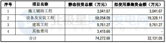 本項(xiàng)目靜態(tài)投資總額為 74,272.69 萬元,具體如下表所示: