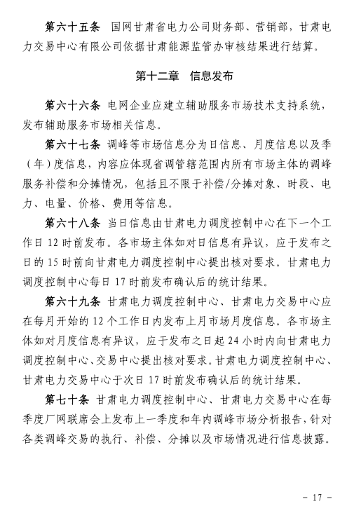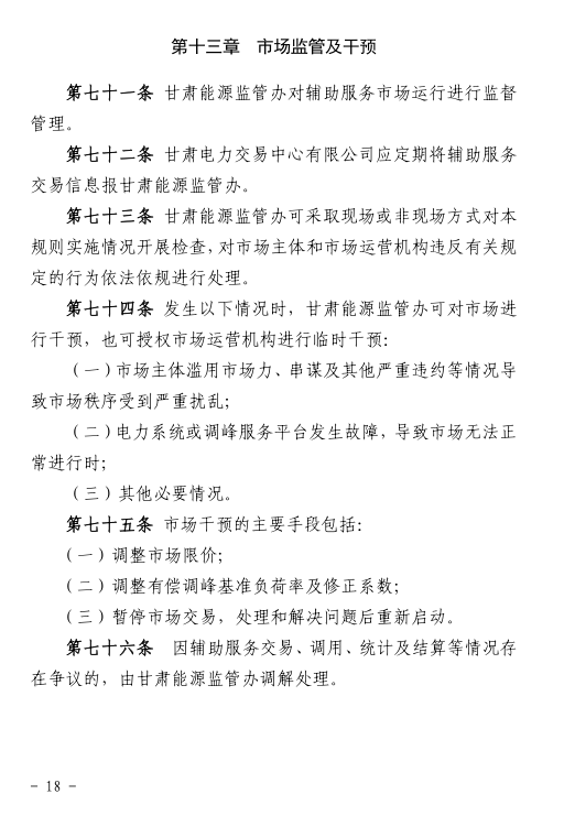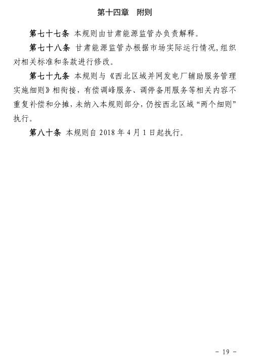 國家能源局甘肅監(jiān)管辦日前發(fā)布了《甘肅省電力輔助服務(wù)市場運(yùn)營規(guī)則(試行)》,于2018年4月1日起執(zhí)行。電力輔助服務(wù)市場的市場主體為已取得