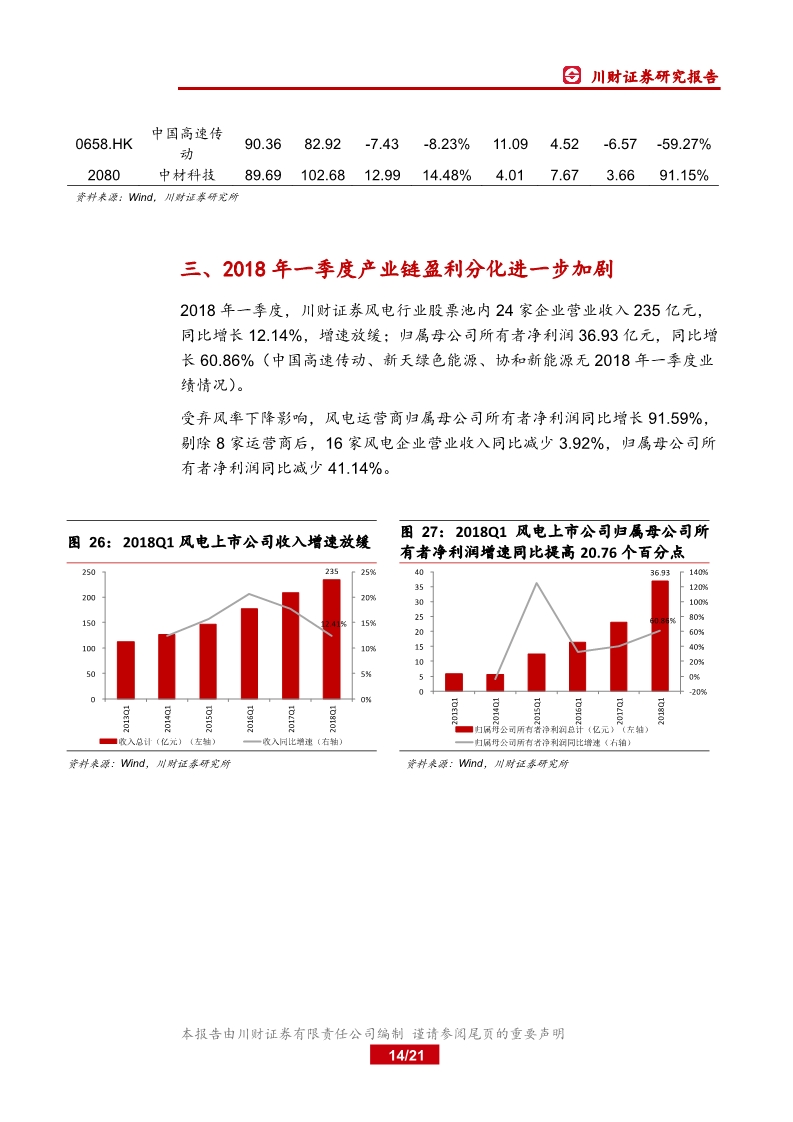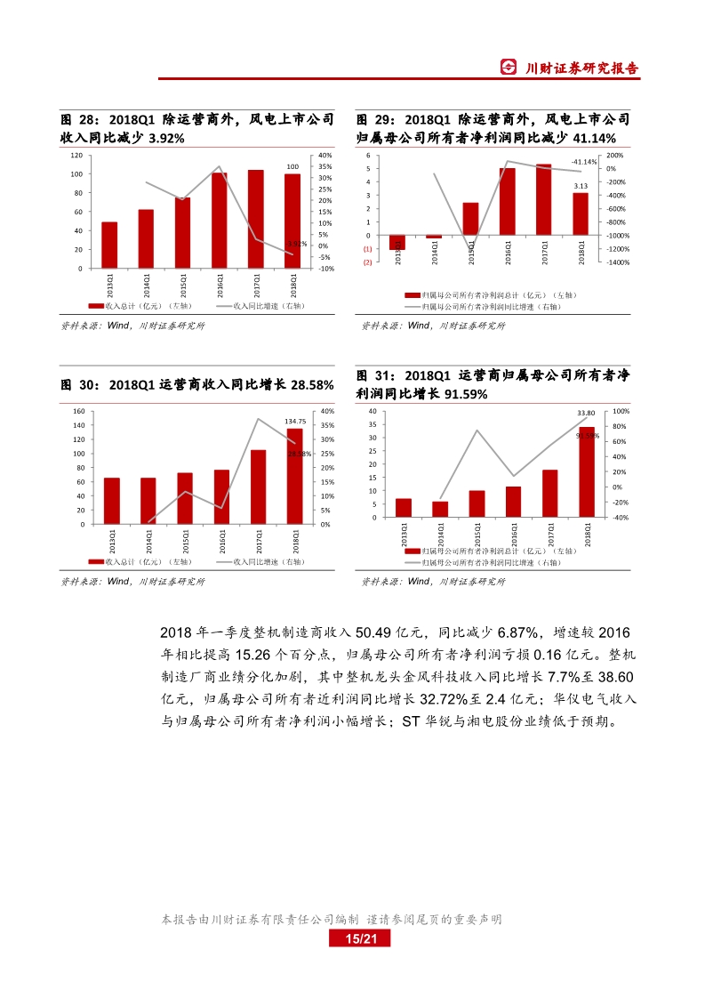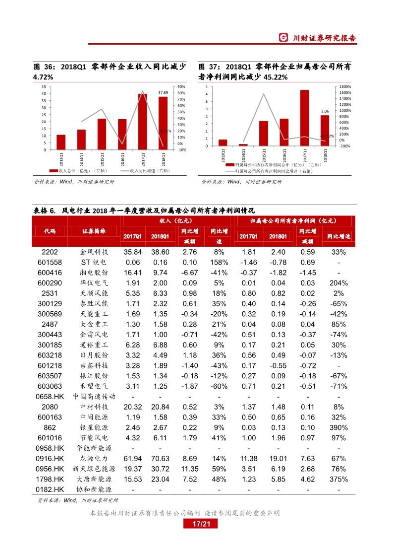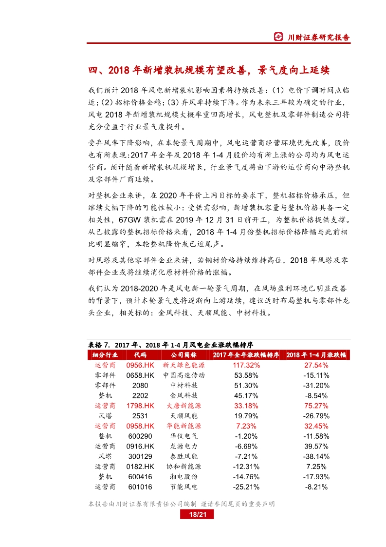 2017 年業(yè)績分化,運營商盈利顯著改善2017 年我國新增并網(wǎng)、吊裝裝機分別同比下滑 22 12%、16 22%,棄風(fēng)率有所下降,全年風(fēng)電發(fā)電量 30