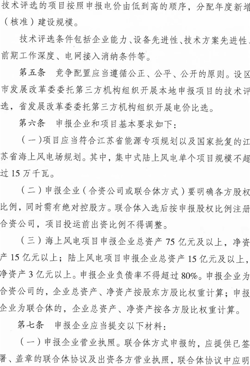 1.項(xiàng)目應(yīng)當(dāng)符合江蘇省能源專項(xiàng)規(guī)劃以及國(guó)家批復(fù)的江蘇省海上風(fēng)電場(chǎng)規(guī)劃。其中,集中式陸上風(fēng)電單個(gè)項(xiàng)目規(guī)模不超過15萬千瓦。