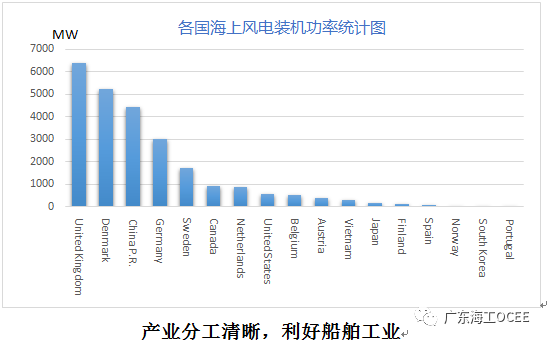 根據(jù)2017年最近的統(tǒng)計數(shù)據(jù),我國在建與已投產(chǎn)的風電累計發(fā)電功率已達到4.44GW,占到全球總量的17.95%,穩(wěn)居世界第三位,同時,從我國的新增海上風電發(fā)電功率趨勢來看,其增長勢頭強勁,與世界第二位丹麥的差距也在不斷縮小。