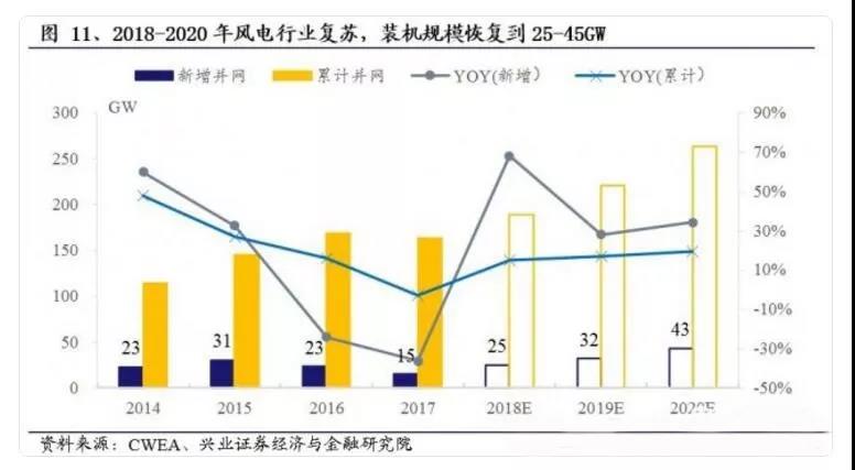 據(jù)興業(yè)證券預(yù)計(jì),參照分布式光伏、分布式天然氣等裝機(jī)規(guī)模發(fā)展規(guī)律,預(yù)計(jì)到2020年,中國分散式風(fēng)電裝機(jī)將達(dá)20GW,每年新增分散式風(fēng)電裝機(jī)規(guī)模增速為100%以上,為國內(nèi)風(fēng)電行業(yè)進(jìn)一步發(fā)展提供有力支撐。