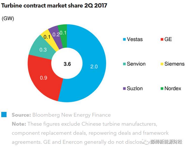 2017年第二季度共簽署總裝機(jī)容量達(dá)3.6GW的風(fēng)電合同