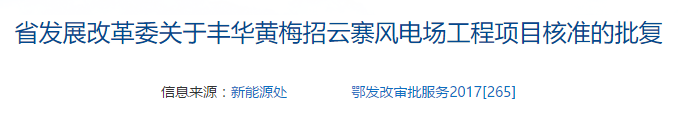豐華能源湖北黃梅招云寨38MW風(fēng)電項(xiàng)目獲核準(zhǔn)(附文件)