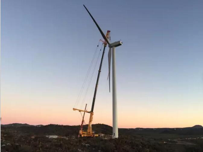 2017年8月,龍?jiān)茨戏堑掳⒍陲L(fēng)電項(xiàng)目完成全部96臺風(fēng)電機(jī)組吊裝;一期、二期項(xiàng)目首臺風(fēng)電機(jī)組均順利完成調(diào)試。