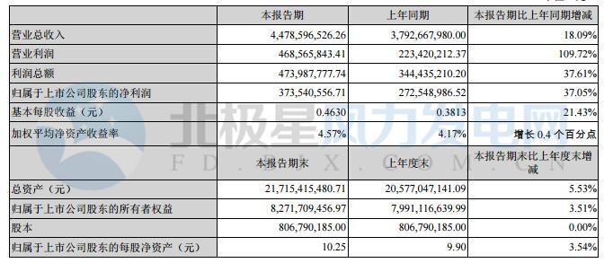 上半年,中材科技營業(yè)利潤 46,856.58 萬元,同比增長 109.72%,歸屬于上市公司股東的凈利潤 37,354.06 萬元,同比增長 37.05%。