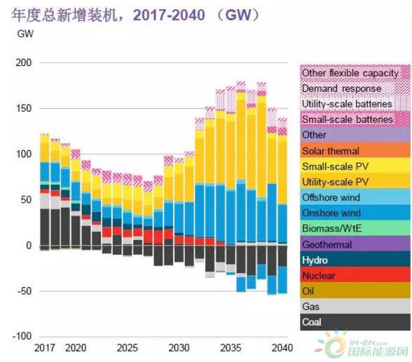 39%& 70%:到2040年,39%的發(fā)電量將會(huì)來自風(fēng)電與光伏,“零排放”能源總共為電力系統(tǒng)提供70%的電力。