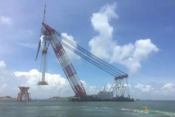 2017年8月7日,繼6月11日完成明陽(yáng)風(fēng)機(jī)整體安裝后,由三航新能源、三航二公司組成的中交三航局聯(lián)合項(xiàng)目部,在珠海桂山海上風(fēng)電場(chǎng)示范項(xiàng)目,成功將聯(lián)合動(dòng)力風(fēng)機(jī)吊裝于24號(hào)機(jī)位。在同一風(fēng)電場(chǎng)完成不同型式風(fēng)機(jī)整體安裝,突顯了中交三航局先進(jìn)的風(fēng)機(jī)安裝技術(shù)和強(qiáng)大的風(fēng)機(jī)安裝實(shí)力。