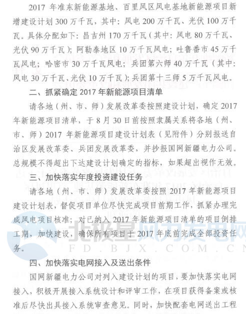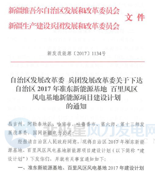 新疆自治區(qū)、建設兵團發(fā)改委近日發(fā)布《關(guān)于下達自治區(qū)2017年準東新能源基地 百里風區(qū)風電基地新能源項目建設計劃的通知》。通知指出,2017年準東新能源基地、百里風區(qū)風電基地新能源項目新增建設計劃300萬千瓦,其中:風電200萬千瓦、光伏100萬千瓦。一直以來受困于棄風限電而無新建風電指標的新疆,終于有了新風電項目,曾經(jīng)的風電主戰(zhàn)場又有了新的生機。以下為通知原文: