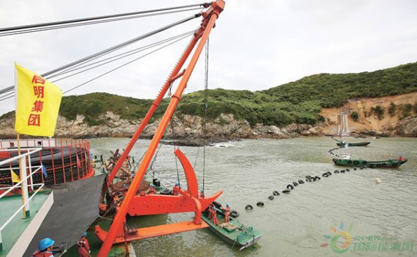 昨天早晨5時(shí)30分,用于國(guó)電舟山普陀6號(hào)海上風(fēng)電場(chǎng)的220千伏海底電纜首端成功登陸六橫島。國(guó)電舟山普陀海上風(fēng)電場(chǎng)是浙江省首個(gè)海上風(fēng)電場(chǎng),該工程將敷設(shè)三條大截面220千伏光電復(fù)合電纜,單根長(zhǎng)10.3公里,預(yù)計(jì)10月中旬完成。