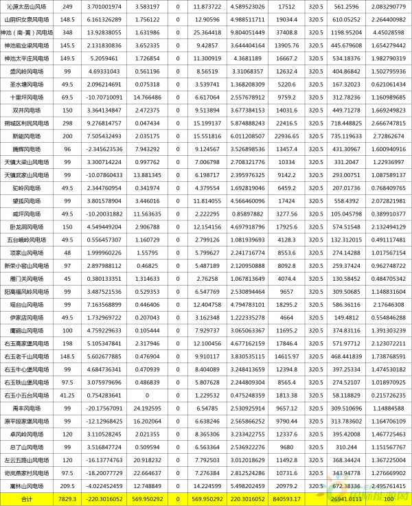 近日,山西能監(jiān)辦公布了2017年6月份風電考核結果,通過表格可以看出,截至6月份,山西風電項目裝機容量總計達到7829.3兆瓦,風電上網電量總計8.4億千瓦時,具體情況如下表所示: