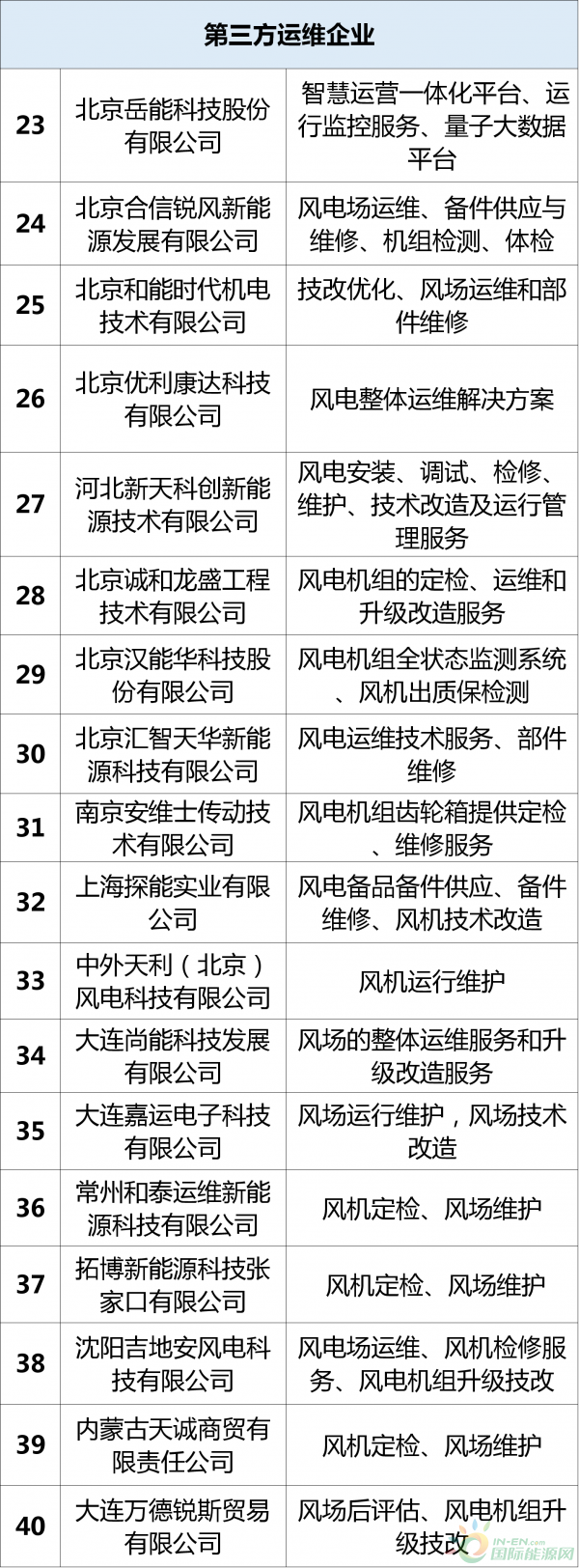 今天,風(fēng)電頭條整理了40家風(fēng)電運(yùn)維企業(yè),他們哪些提供風(fēng)電整機(jī)商運(yùn)維服務(wù),哪些是第三方運(yùn)維商呢?