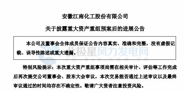 近日江南化工發(fā)布關(guān)于披露重大資產(chǎn)重組預(yù)案后的進(jìn)展公告,截至公告披露日,江南化工及相關(guān)各方正在積極推進(jìn)本次資產(chǎn)重組事項涉及的各項工作,標(biāo)的公司盾安新能源剝離旗下的風(fēng)機設(shè)備研發(fā)及制造業(yè)務(wù)(內(nèi)蒙古久和能