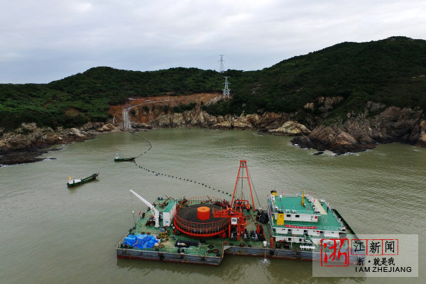 浙江首個(gè)海上風(fēng)電場(chǎng)最后一條220千伏海纜順利登陸