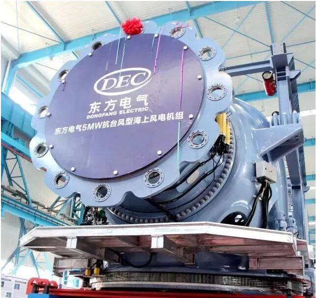 東方 電氣抗臺(tái)風(fēng)型5兆瓦海上風(fēng)電機(jī)組完工下線