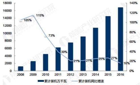 據(jù)前瞻產(chǎn)業(yè)研究院發(fā)布的《海上風(fēng)電行業(yè)市場前瞻與投資規(guī)劃分析報告》數(shù)據(jù)顯示,2016年中國(除臺灣地區(qū)外)風(fēng)電新增裝機容量為2337萬千瓦,同比下降24%;累計裝機容量達1.69億千瓦。