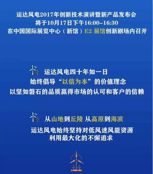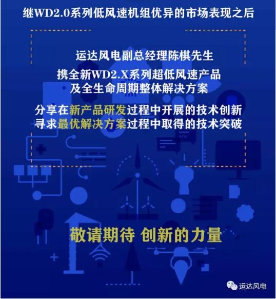 運達風(fēng)電將攜全新WD2.X系列超低風(fēng)速產(chǎn)品及全生命周期整體解決方案亮相CWP2017!