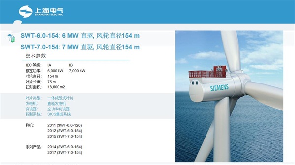 10月17日,北京國際風(fēng)能大會(huì)暨展覽會(huì)(CWP2017)在中國國際展覽中心(新館)隆重召開。展會(huì)期間,上海電氣舉辦了風(fēng)電技術(shù)論壇,上海電氣風(fēng)電集團(tuán)解決方案中心副主任黃軒主題分享《海上直驅(qū)型風(fēng)力發(fā)電機(jī),SWT-7.0-154》,黃軒表示,SWT-7.0-154是一個(gè)基于成熟的直驅(qū)平臺(tái)的升級版,適應(yīng)海上的風(fēng)電場的應(yīng)用。技術(shù)的核心采用了一體成形的葉片,包括永磁的發(fā)動(dòng)機(jī),以及集中式的控制系統(tǒng)。