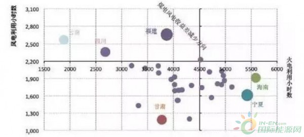 幾個棄風(fēng)重災(zāi)區(qū)(棄風(fēng)率高于30%),甘肅的火電利用小時數(shù)為3800 小時,遼寧為4300 小時,新疆為4700 小時, 內(nèi)蒙古接近5000 小時。在可再生能源負(fù)荷在最大負(fù)荷中的占比超過50%,甚至100% 的背景下,傳統(tǒng)火電還能有如此高的利用率,在最小化成本調(diào)度的體系中,這是無法想象的。這意味著,還遠(yuǎn)遠(yuǎn)不到討論電源與電網(wǎng)是否協(xié)調(diào)(更確切地說,是否短期存在嚴(yán)重的網(wǎng)絡(luò)阻塞,長期需要擴(kuò)容)的地步。系統(tǒng)仍然存在相當(dāng)程度未耗竭的可再生能源發(fā)電增長空間,需要的僅僅是系統(tǒng)調(diào)度方式的改變。