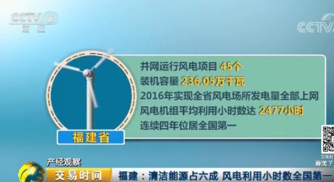 福建省電力調(diào)控中心水電及新能源處的數(shù)據(jù)顯示,目前,福建省并網(wǎng)運(yùn)行的風(fēng)電項(xiàng)目有45個(gè),裝機(jī)容量236.05萬(wàn)千瓦,2016年,福建實(shí)現(xiàn)全省風(fēng)電場(chǎng)所發(fā)電量全部上網(wǎng),風(fēng)電機(jī)組平均利用小時(shí)數(shù)達(dá)2477小時(shí),連續(xù)四年位居全國(guó)第一。同時(shí),包括核、風(fēng)、水、氣在內(nèi)的多種清潔能源發(fā)電占比高達(dá)61%。福建已由昔日缺油短氣少煤的能源自然儲(chǔ)備“小省”蛻變?yōu)榍鍧嵞茉?ldquo;大省”。