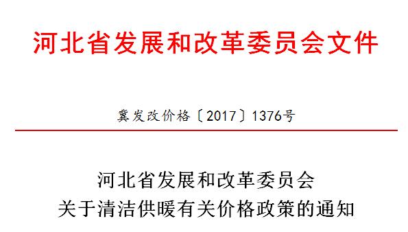 為推動我省清潔供暖工作,根據(jù)《國家發(fā)展改革委關(guān)于印發(fā)北方地區(qū)清潔供暖價格政策意見的通知》(發(fā)改價格〔2017〕1684號)、《中共河北省委河北省人民政府關(guān)于強(qiáng)力推進(jìn)大氣污染綜合治理的意見》(冀發(fā)〔2017〕7號)精神,現(xiàn)將有關(guān)價格政策明確如下: