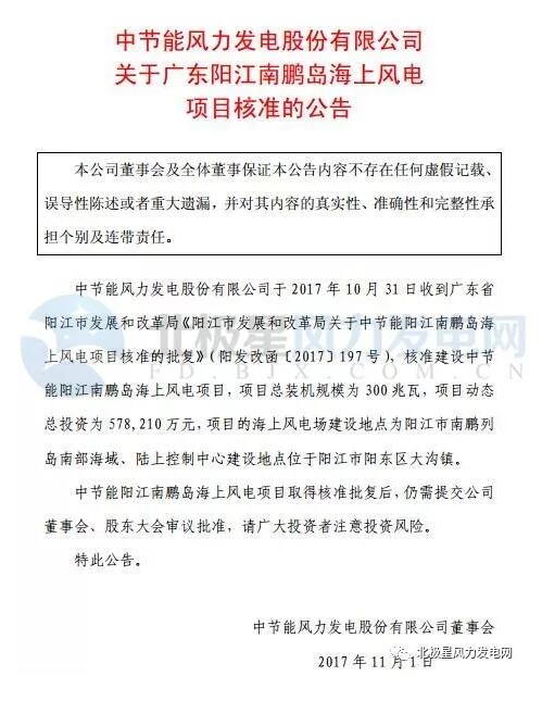 廣東陽江市發(fā)展改革局近日核準(zhǔn)了兩個海上風(fēng)電項目, 總裝機(jī)600MW。分別是:中節(jié)能陽江南鵬島300MW海上風(fēng)電項目、三峽廣東陽江300MW海上風(fēng)電項目。以下為核準(zhǔn)詳情: