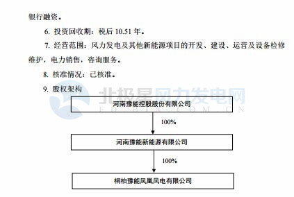 11 月 8 日,豫能控股董事會 2017 年第 4 次臨時會議審議通過了《關于投資桐柏鳳凰風電項目的議案》,決定其子公司河南豫能新能源有限公司出資設立桐柏豫能鳳凰風電有限公司,持股比例 100%,負責投資建設桐柏鳳凰風電項目,總投資 7.99 億元。