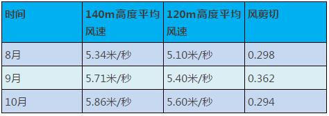 為對比120米高度和140米高度的運行情況,剔除運維檢修參觀等停機時間段,保留120米和140米共同發(fā)電的時間,從8-10月的統(tǒng)計數(shù)據(jù)來看,140米風(fēng)機發(fā)電量比120米發(fā)電量分別高19.08%、18.24%、13.27%。