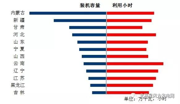圖6 1-10月份風(fēng)電裝機(jī)較多省份風(fēng)電裝機(jī)容量和設(shè)備利用小時(shí)