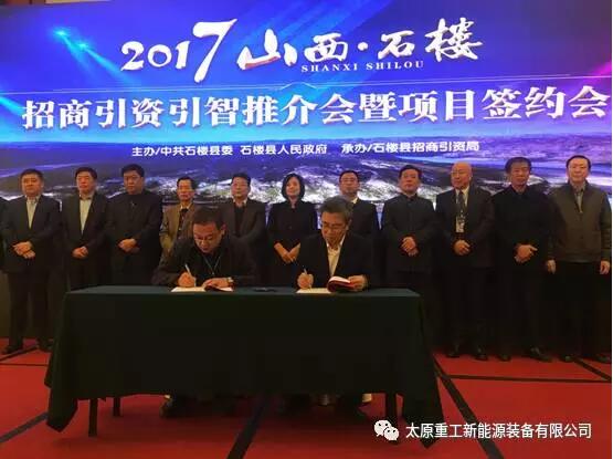 11月中旬,由中共石樓縣委、縣政府主辦的“2017山西˙石樓——招商引資引智推介會暨項目簽約會”在太原市迎澤賓館舉行。石樓縣、呂梁市直相關單位負責人和來自省內(nèi)外50多家企業(yè)代表匯聚一堂,為石樓縣的招商引資及經(jīng)濟發(fā)展建言獻策。太原重工新能源裝備有限公司副經(jīng)理張建功出席此次推介會,并代表公司與石樓縣政府簽訂了148MW風力發(fā)電項目合作開發(fā)框架協(xié)議。