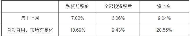 3、上網(wǎng)模式:自發(fā)自用+市場交易化,自發(fā)自用比例為40%,市場交易化為60%;