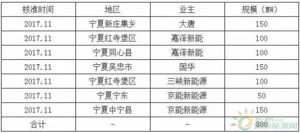 寧夏2017年新核準項目