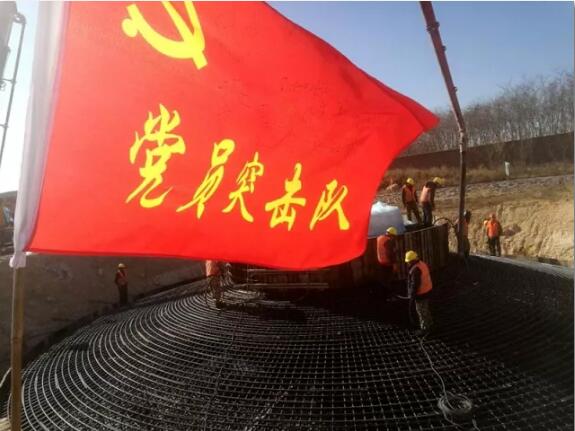 工期是效益。在保障安全、質量的前提下,以及1號風機基礎施工圖紙2017年10月20日到圖的實際情況,突擊隊隊員周密組織、不等不靠、認真籌劃、以艱苦奮斗的精神和敢打硬仗的作風披荊斬棘,戰(zhàn)勝一個個困難,攻克一道道難關。短短幾天即完成1號風機的FCD,2017年12月4日混凝土強度即滿足吊裝條件,全體黨員以實際行動充分體現了黨員的先鋒模范作用和黨支部的戰(zhàn)斗堡壘作用,讓黨員突擊隊的旗幟在施工現場迎風飄揚。