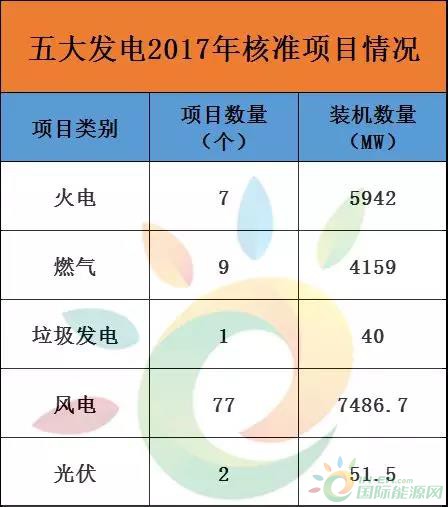 下面是五大發(fā)電集團2017年所核準項目的具體情況: