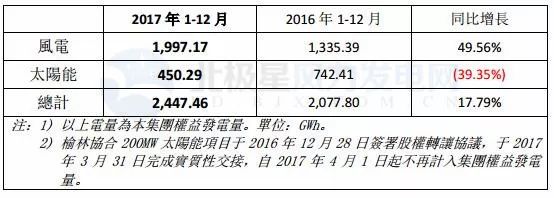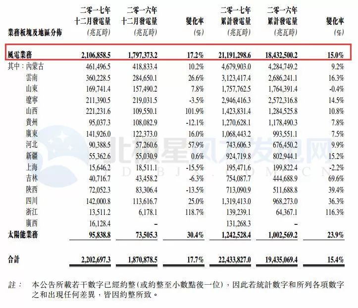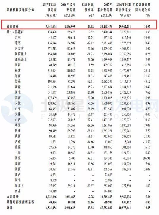 近期龍?jiān)措娏?、華能新能源、華電福新、華潤(rùn)電力、協(xié)合新能源相繼曬出了2017年風(fēng)電成績(jī)單。以下為具體數(shù)據(jù):注:國(guó)投電力、節(jié)能風(fēng)電、大唐新