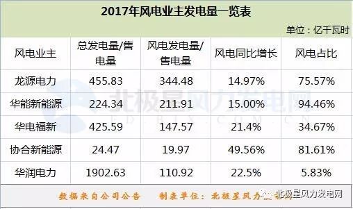近期龍?jiān)措娏?、華能新能源、華電福新、華潤(rùn)電力、協(xié)合新能源相繼曬出了2017年風(fēng)電成績(jī)單。以下為具體數(shù)據(jù):