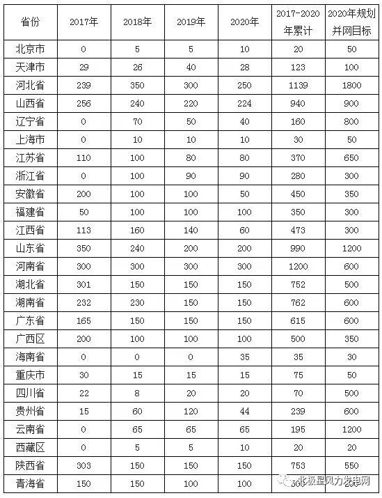 2017~2020 年風電新增建設規(guī)模方案(萬千瓦)