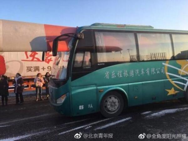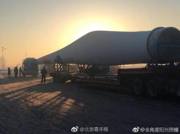 史先生給北青報(bào)記者提供的照片顯示,扇葉被平放裝在一輛運(yùn)輸車(chē)上,扇葉尾端從大客車(chē)司機(jī)座位上方穿進(jìn)大客車(chē)內(nèi)。照片中顯示,路面上有一些雪,史先生表示,當(dāng)?shù)刈蛱煸?jīng)下過(guò)雪。他告訴北青報(bào)記者,據(jù)他所見(jiàn),現(xiàn)場(chǎng)沒(méi)有人有明顯的外傷。