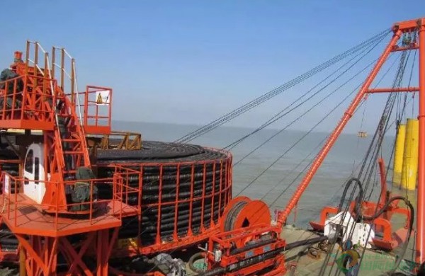 ▲敷設(shè)中的國內(nèi)首條三芯220千伏的海纜