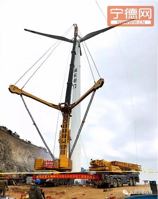 1月23日上午10時許,在霞浦浮鷹島風(fēng)電項目建設(shè)現(xiàn)場,9號風(fēng)機成功吊裝,標志著該項目24臺風(fēng)機已全部吊裝到位。據(jù)了解,隨著風(fēng)機吊裝工程的全