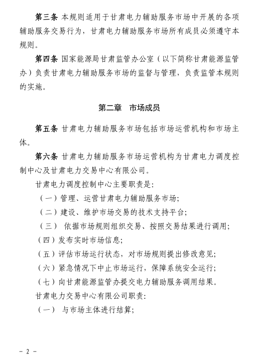 國(guó)家能源局甘肅監(jiān)管辦日前發(fā)布了《甘肅省電力輔助服務(wù)市場(chǎng)運(yùn)營(yíng)規(guī)則(試行)》,于2018年4月1日起執(zhí)行。電力輔助服務(wù)市場(chǎng)的市場(chǎng)主體為已取得